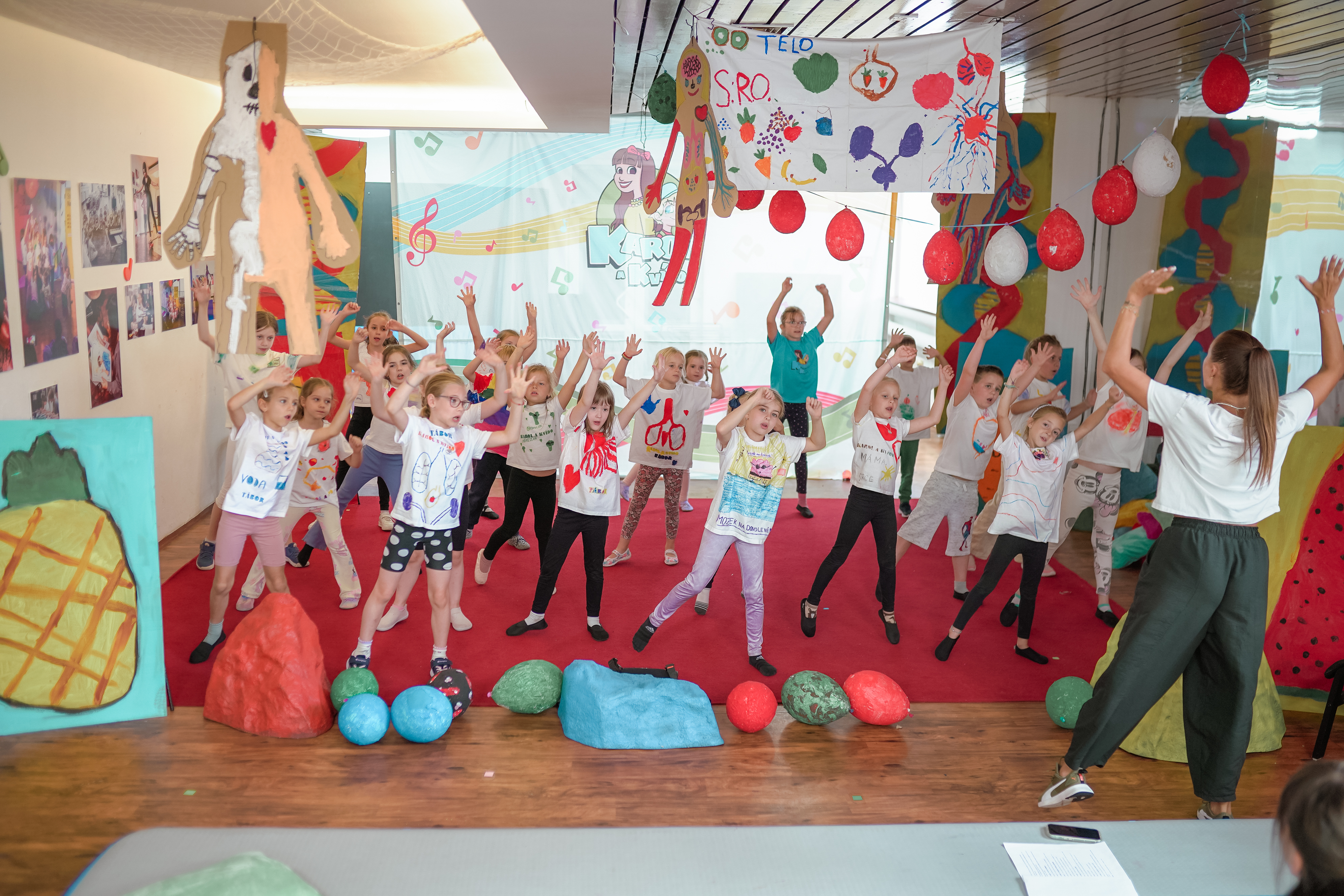 Každý den budou probíhat taneční a herecké lekce pod vedením našich zkušených lektorek. Na táboře se samozřejmě děti potkají i s Karol a to v nahrávacím studiu! Během pěveckých lekcí se děti naučí písničku, jejíž téma určí i téma celého týdne. Společně s lektorkami pak nastudují hereckou scénku, vyrobí si kulisy i kostýmy. Na programu je i návštěva profesionálního nahrávacího studia Rooftop studios, kde společně natočí písničku Karol a Kvído pod vedením Karol.